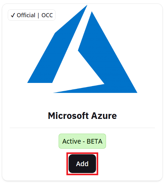 Navigate to the Integrations tab and click Add on the Azure integration.
