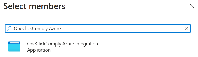 In this new menu, type in the name of the app that you registered. Our example is called "OneClickComply Azure Integration."