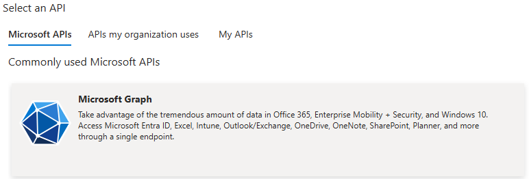 Click on Add a permission, and then select Microsoft Graph, as indicated below: