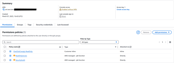 In order to establish a connection between the OneClickComply platform and your AWS environment, we require the use of an IAM (Identity and Access Management) user with read-only permissions. The first section of this guide has been designed to walk you through that process.