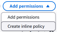 Back on the user screen, click the Add Permissions dropdown (located within the Permissions tab in the middle of the page) and select Create Inline Policy.