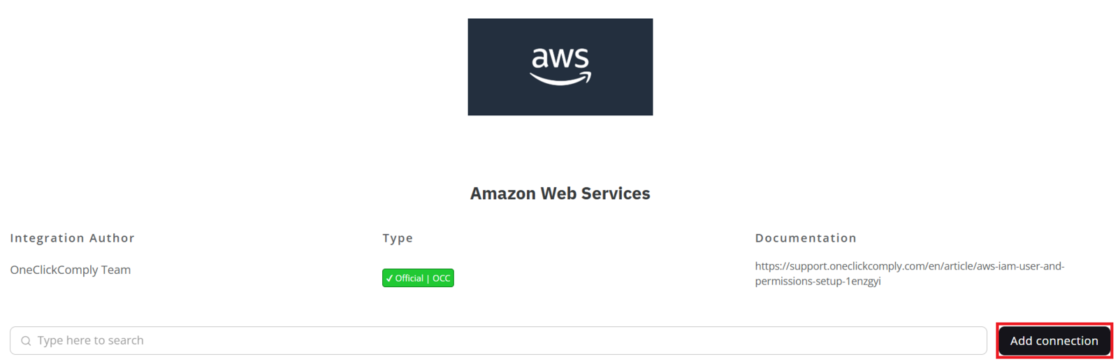Please follow the steps outlined below to connect your Amazon Web Services environment to the OneClickComply platform.