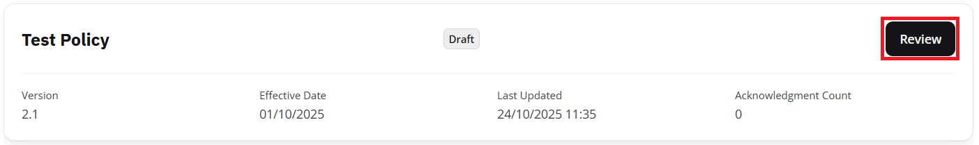 To notify employees, click the Review button on your desired policy, as shown below: