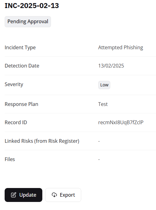 Risk Register: Any risks within the risk register that should be linked to this incident.
