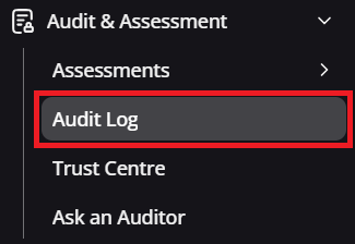 To access the Audit Log area, navigate to Audit & Assessment > Audit Log, as shown below: