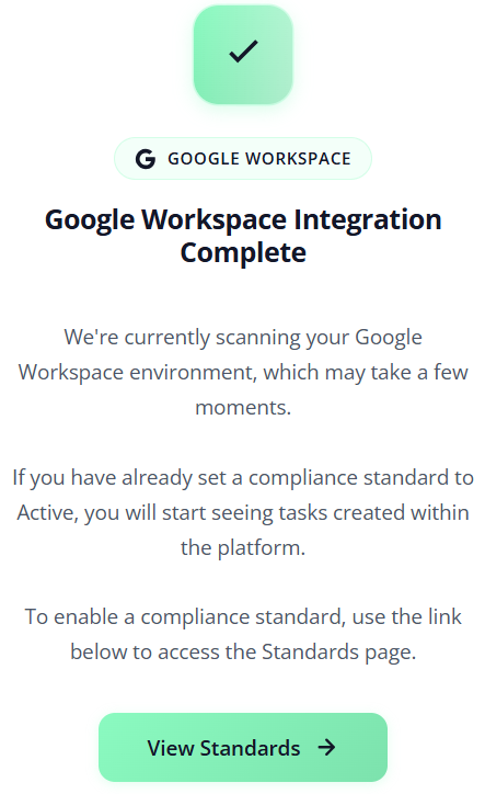 The platform will then begin scanning your environment for gaps and misconfigurations in line with the standards included in your subscription package.