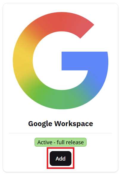 Select Add on the Google Workspace box, then Add Connection.