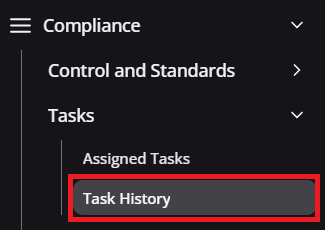 To access the Task History area, navigate to Compliance > Tasks > Task History, as shown below: