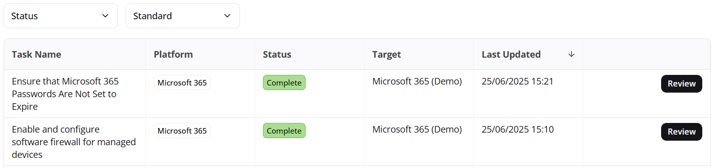 Note: Completed tasks can still have evidence attached to them. Using the Task History page to review and update associated evidence is a good method of managing your compliance effectively.