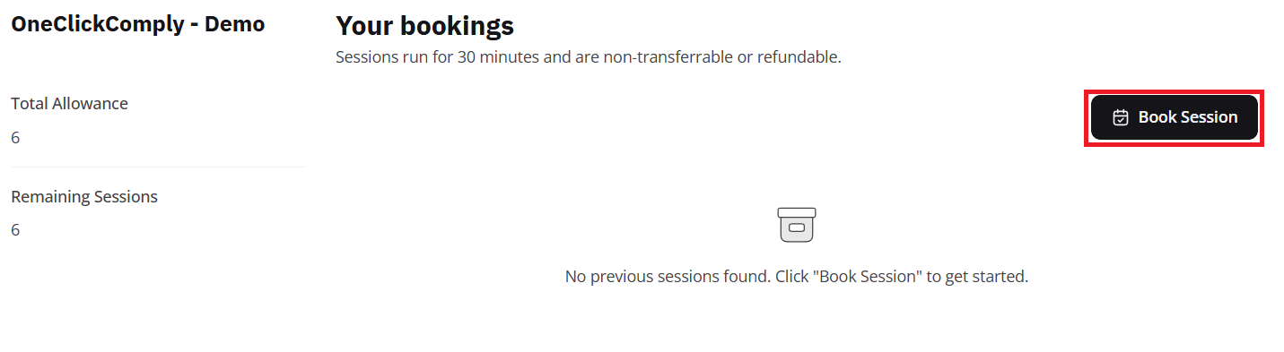 To book a session with our team, select the Book Session button, located on the right-hand side, as shown below: