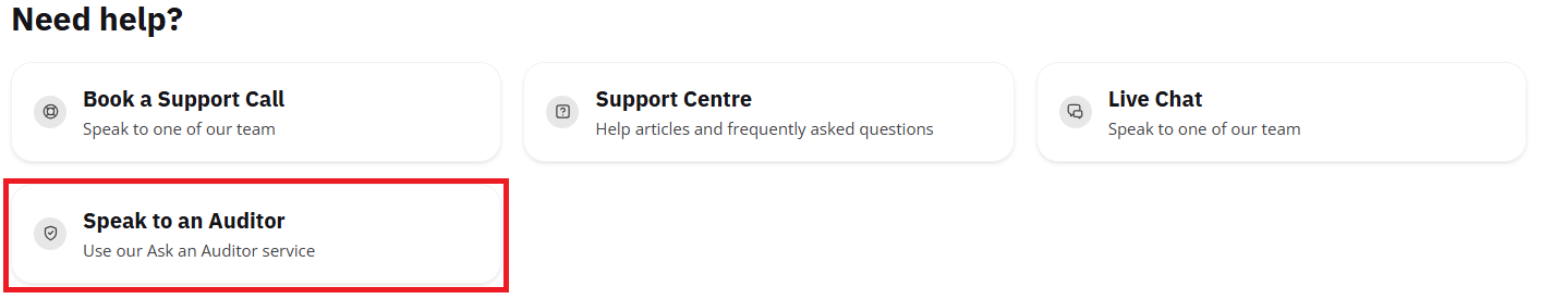 A step-by-step guide for accessing and utilising the ask an auditor support feature.