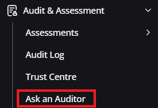 From the navigation bar, select Audit & Assessment > Ask an Auditor, as shown below: