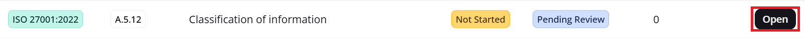 On the homepage of the OneClickComply platform, simply select the standard that you wish to view the controls of. This will open a new page that only shows the controls of that specific standard. As an example, selecting the ISO 27001 card on the homepage will only show the controls related to ISO 27001.